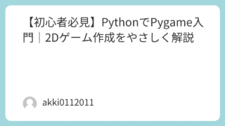 python 【初心者必見】PythonでPygame入門|2Dゲーム作成をやさしく解説 Pythonで2Dゲームを作ってみたいけれど、何から始めればいいかわからない。そんな人におすすめなのが「Pygame」です。この記事では、Pygameの導入から簡単な2Dゲームの作成方法までを、初心者向けにやさしく解説します。Pygameと... 2025.09.16 pythonプログラミング