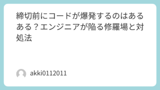 ツール 締切前にコードが爆発するのはあるある?エンジニアが陥る修羅場と対処法 「締切直前なのに突然コードが壊れた!」という経験は、多くのエンジニアにとって共感できるものではないでしょうか。この記事では、なぜ締切前に限ってコードが爆発するのか、その背景と対策を初心者にもわかりやすく解説します。なぜ締切前にコードは壊れる... 2025.09.27 ツール