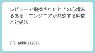 ツール レビューで指摘されたときの心境あるある|エンジニアが共感する瞬間と対処法 コードレビューで指摘を受けたとき、誰しもが少なからず心が揺れるものです。「やってしまった…」から「確かに勉強になる!」まで、さまざまな感情の波があります。本記事では、レビューで指摘されたときのリアルな心境あるあると、その後の前向きな対処法を... 2025.09.21 ツール